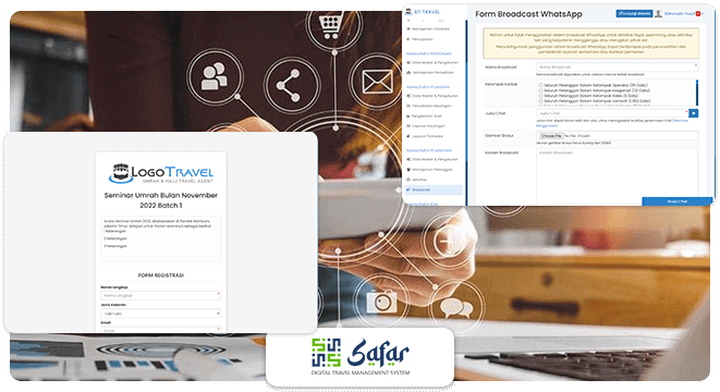 Sistem Safar membantu memaksimalkan digital marketing pada travel Anda dengan beragam tools seperti : WhatsApp marketing, Email marketing, Lead Magnet, Search Engine Optimization (SEO), dan berbagai tools lainnya yang dapat mendukung pemasaran digital travel Anda lebih maksimal.